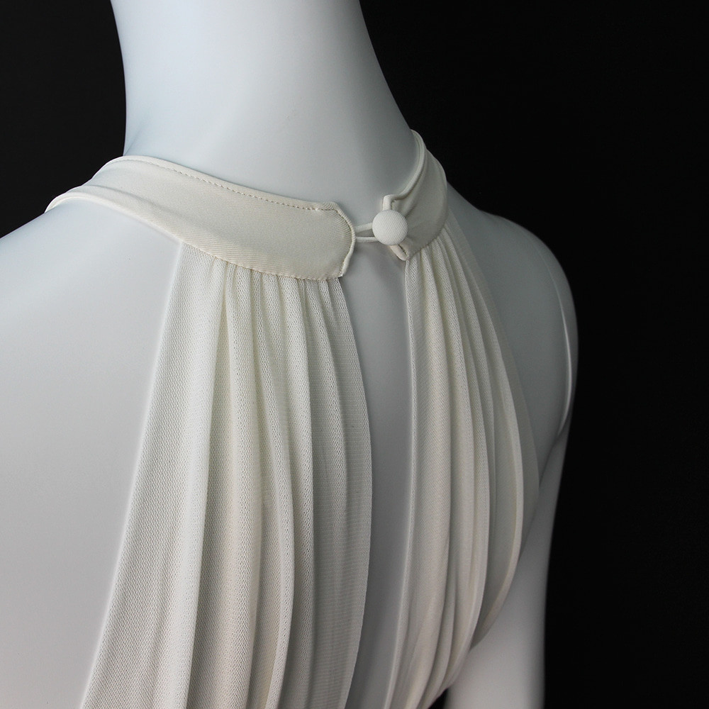 ✔ 領口至肩線皆經手工抓皺設計,工藝極致細緻