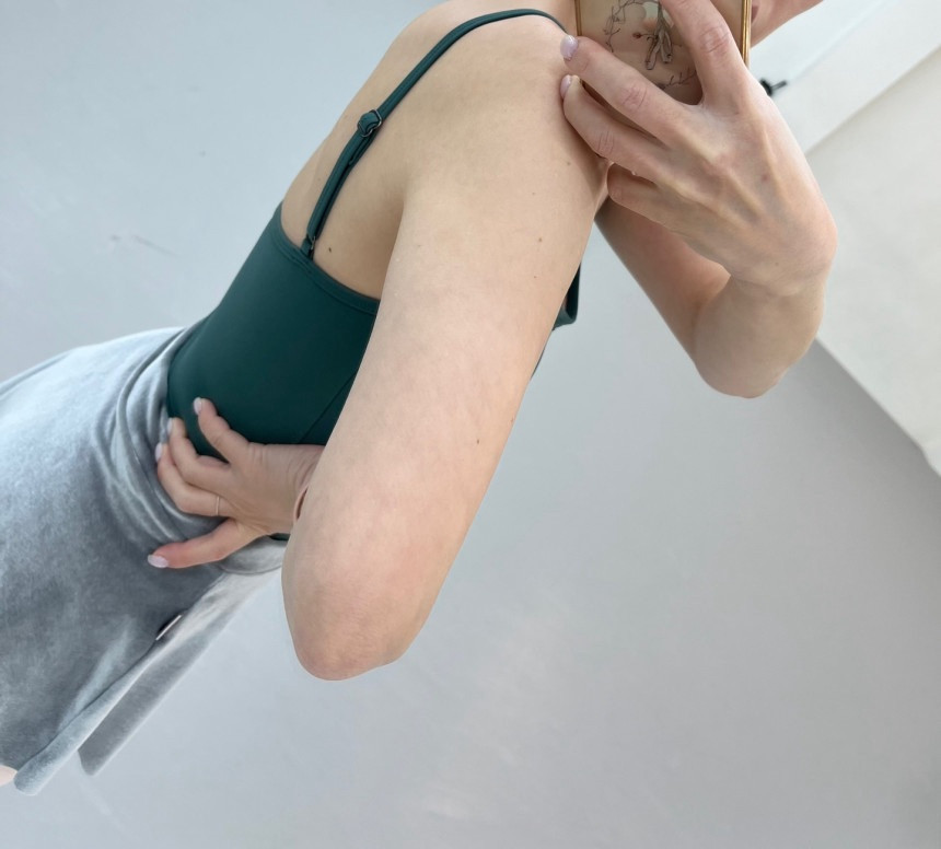 肩帶可調節、舞衣布料包覆身形又不緊勒