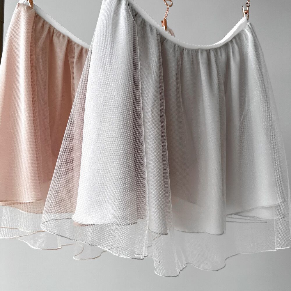 | 單一尺寸 (平量公分) | 鬆緊腰帶31 | 外裙長(透紗部分)30 | 內裙長25 |
