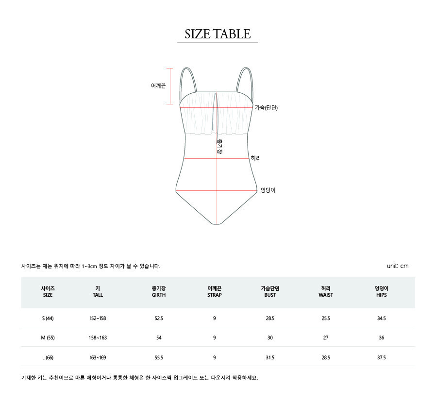 ◆尺寸表左到右:身高、總長、肩帶長、胸圍、腰圍、臀圍
