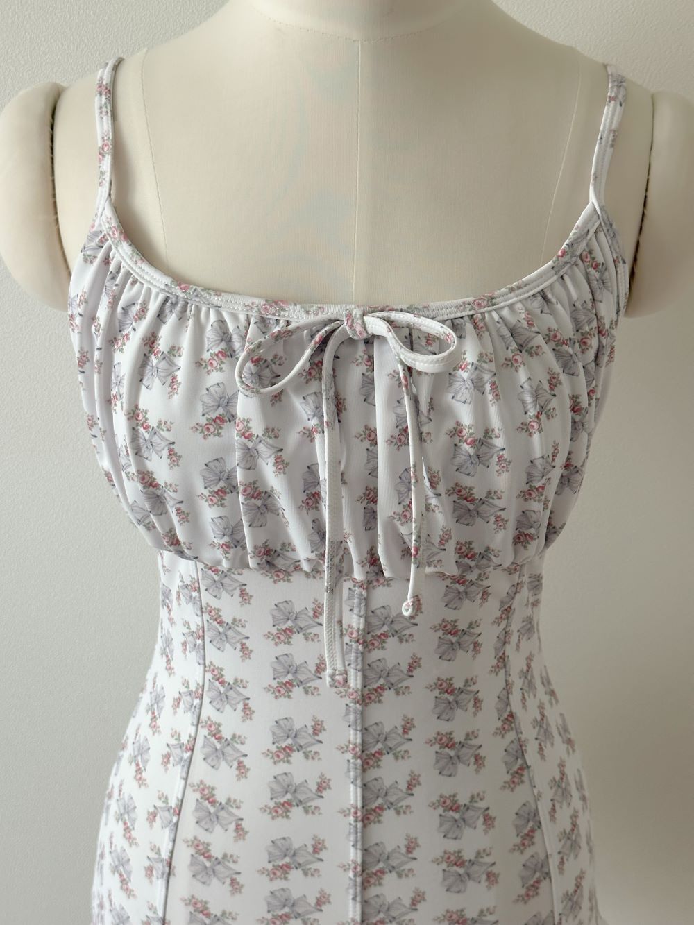 以經典吊帶款式為基礎,胸前加入細緻的小抓皺設計