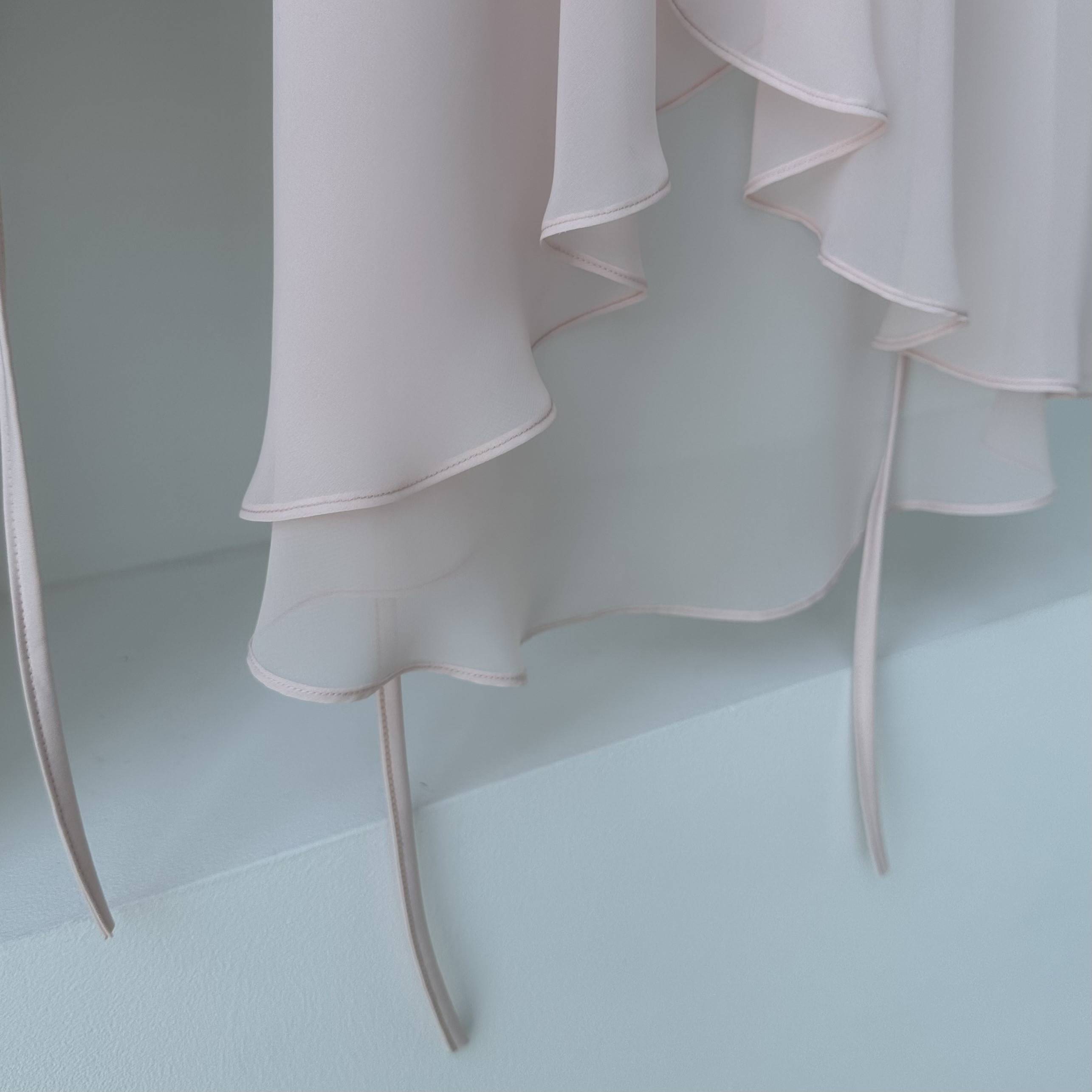 這款舞裙以高質感絲質雪紗材質呈現出優雅色調與纖細層次