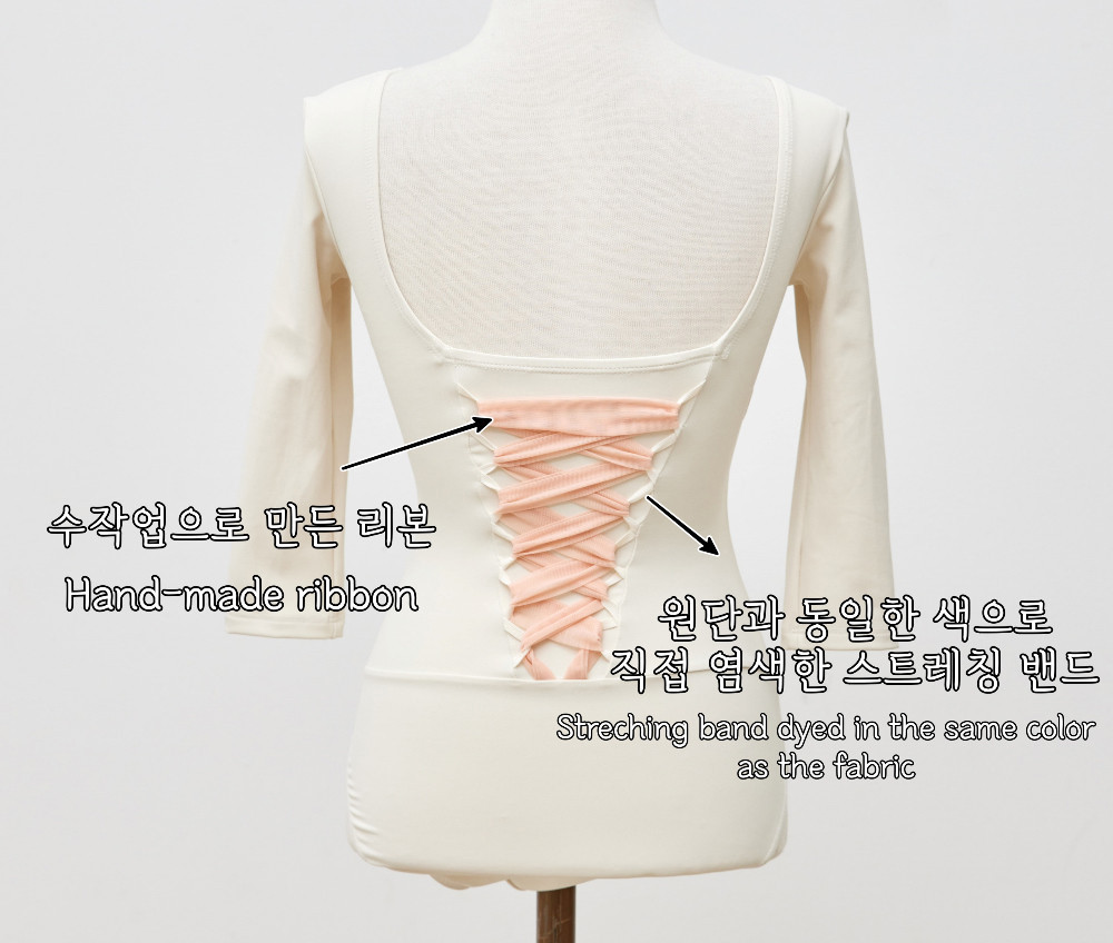 舞衣背後的雪紡綁帶不需自行綁上,而是採用固定的裁縫方式方便穿脫