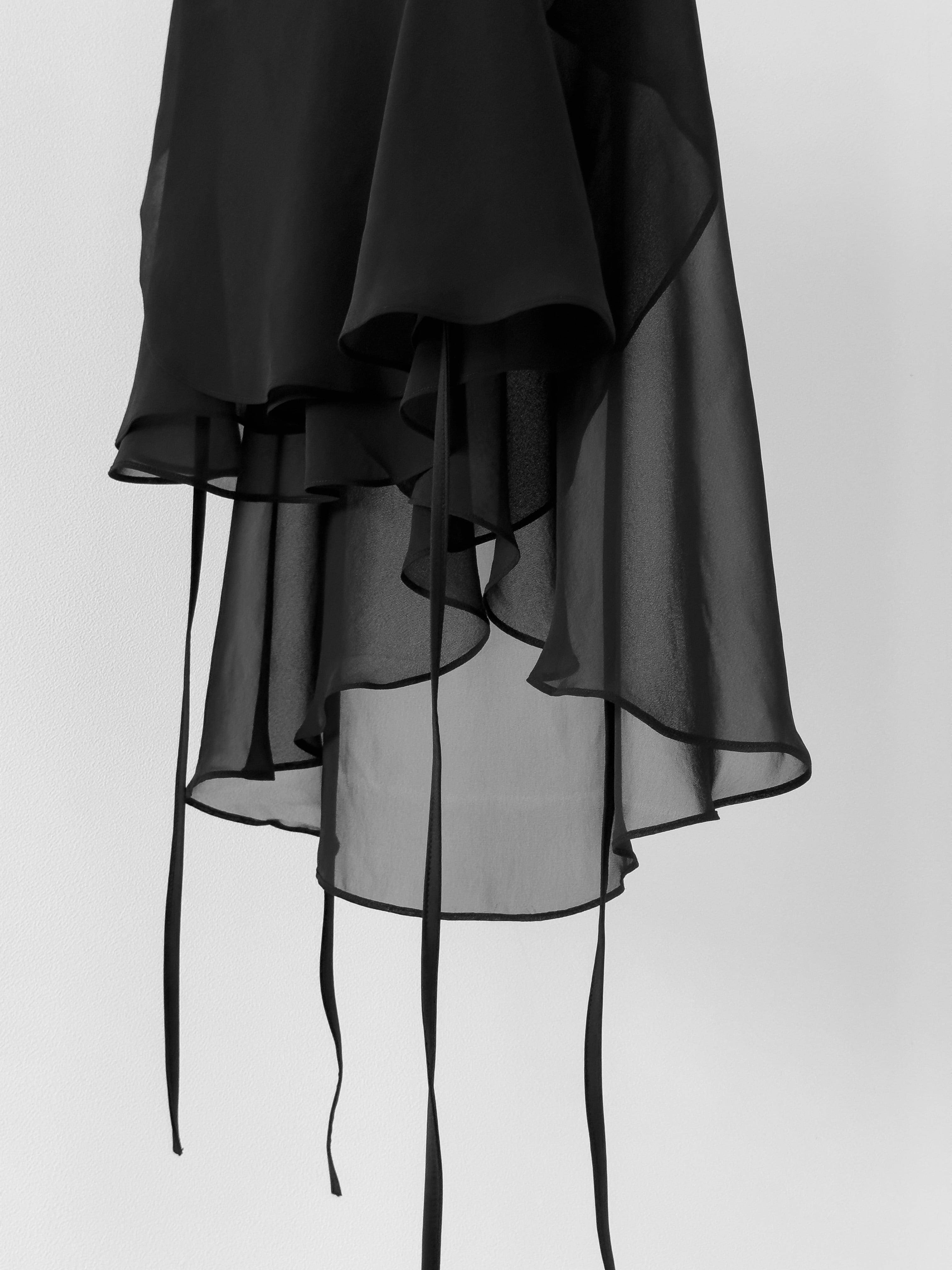 這款舞裙以高質感絲質雪紗材質呈現出優雅色調與纖細層次